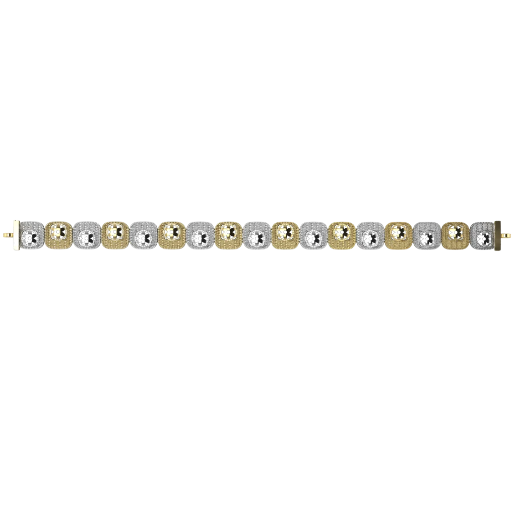 Браслет с цепочным плетением с подвижными звеньями и ровной линией и светлыми камнями, расставленными как акценты по линии. Гибкая посадка даёт комфорт, а линия остаётся аккуратной и собранной.