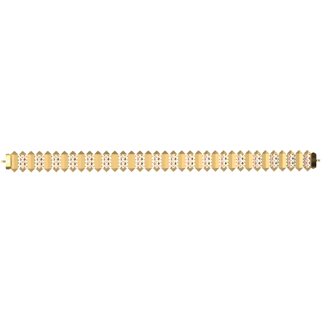 Браслет с ритмом звеньев с собранным плетением и аккуратной геометрией в лаконичном стиле, с упором на полировку и ритм звеньев. Плетение выглядит цельно, при этом браслет легко сочетать с часами и кольцами.