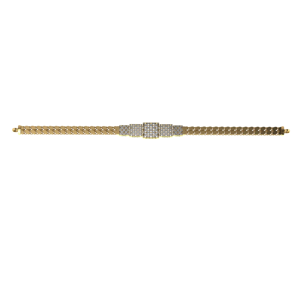 Гибкий браслет со звеньями со звеньями средней толщины и уверенным блеском без ярких вставок, где акцент строится на форме плетения. Подвижная конструкция удобно ложится на запястье и красиво смотрится в движении.