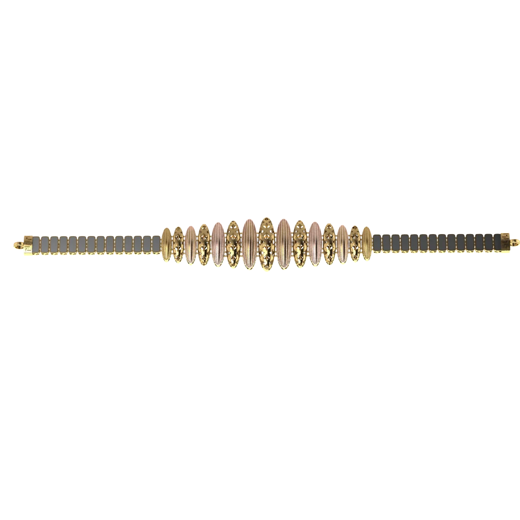 Широкая модель на запястье с широкой лентой плетения и заметным объёмом без ярких вставок, где акцент строится на форме плетения. Силуэт не перегружает образ и подходит для ежедневной носки. Ширина плетения делает акцент заметнее, но линия остаётся аккуратной.