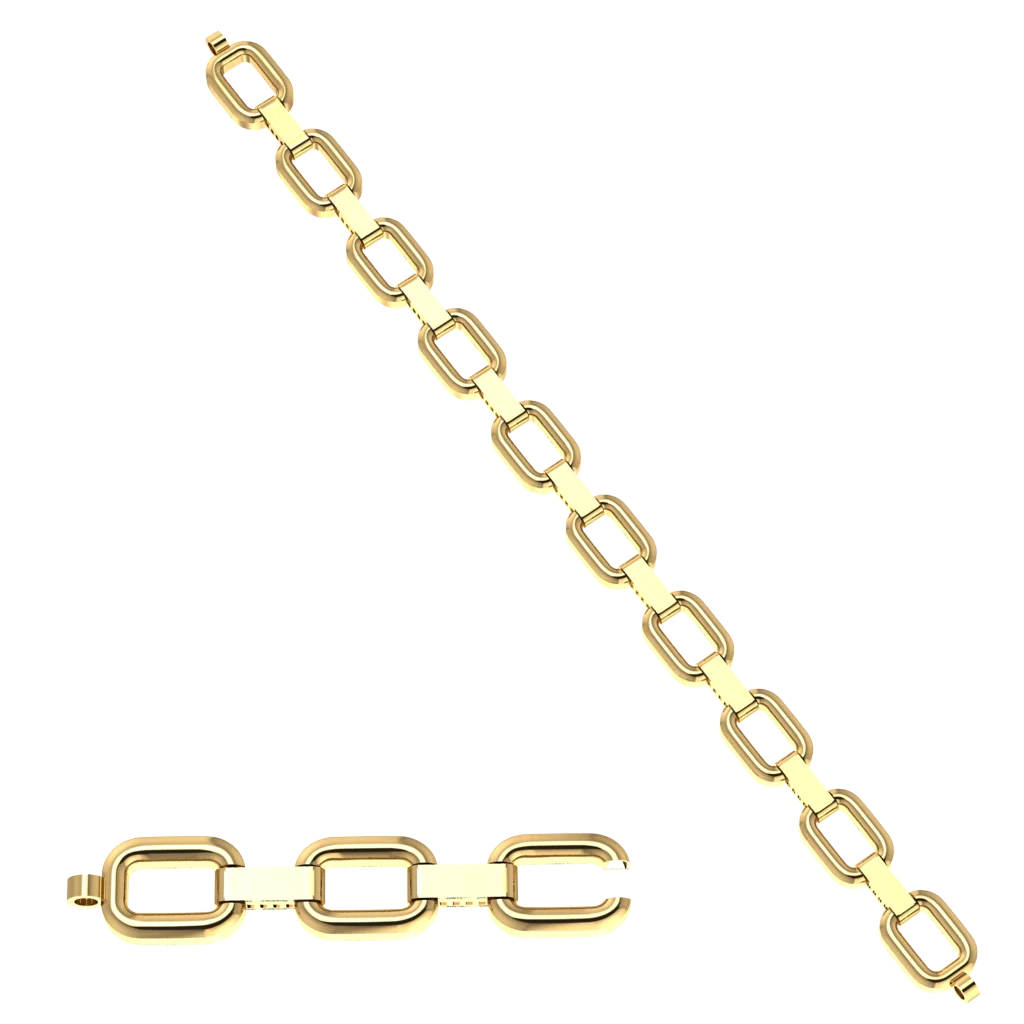 Браслет на цепочке с тонкими звеньями и аккуратной застёжкой без лишнего декора, где акцент строится на форме звеньев. Силуэт выглядит собранно, а гибкая конструкция сохраняет комфортную посадку.