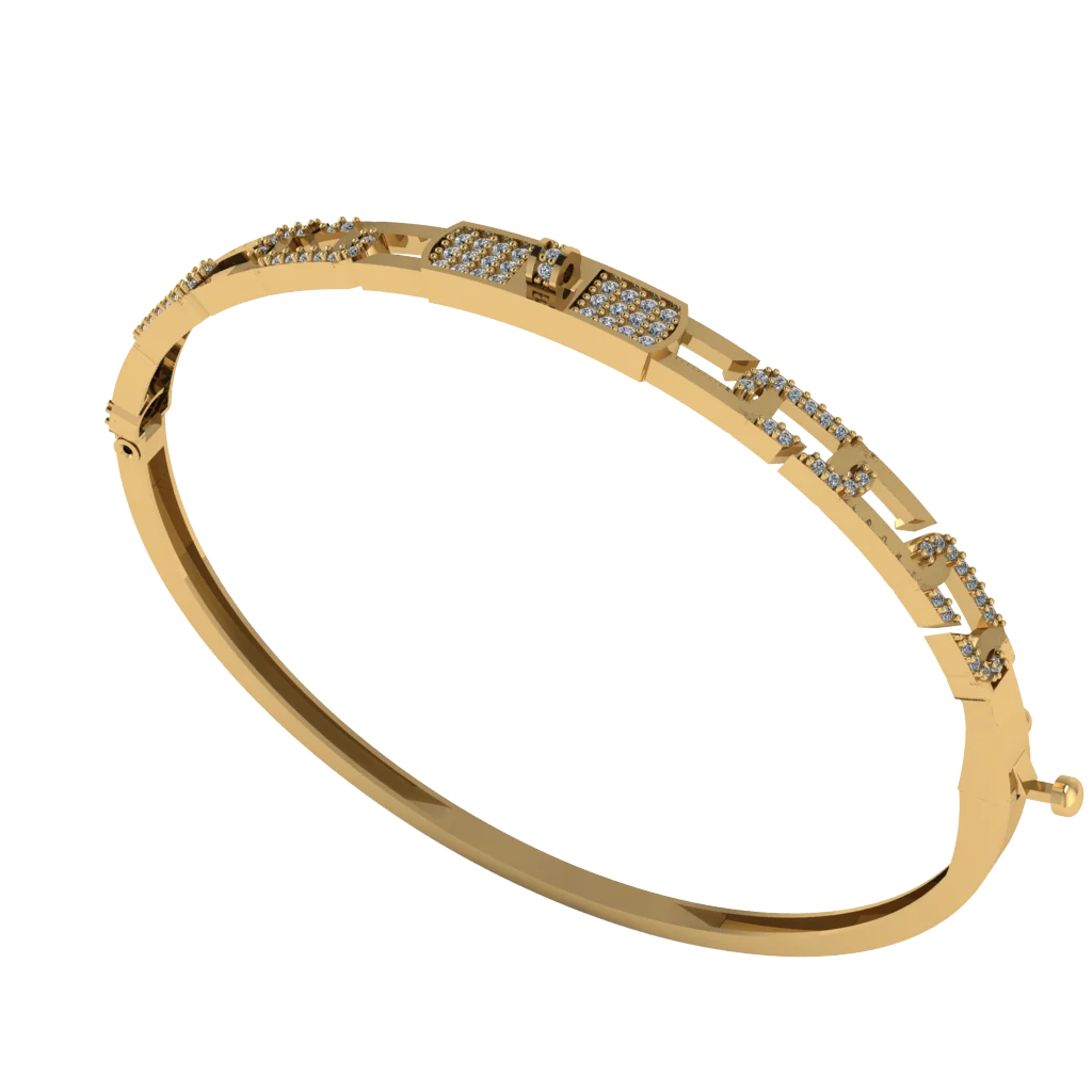 Геометричный браслет из золота с чередованием открытых прямоугольных звеньев и блестящих вставок: в центральной части две площадки с камнями подчёркивают современный характер украшения.