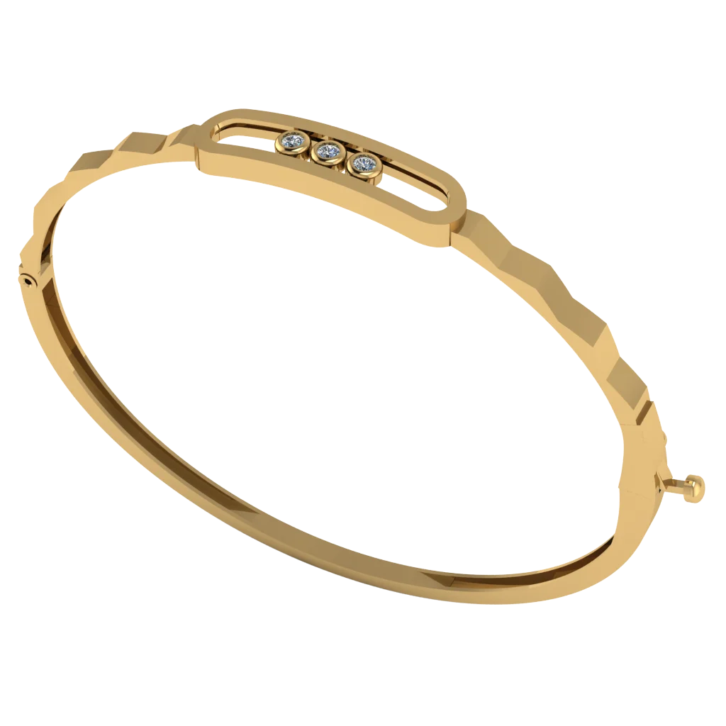 Лаконичный жёсткий браслет из золота с минималистичным верхним модулем: три округлые вставки в гладких оправах выстроены в линию, создавая аккуратный современный акцент.