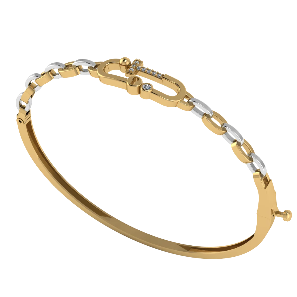 Браслет из золота с комбинированными звеньями и аккуратной застёжкой: ряд камней на верхнем сегменте добавляет блеск, а круглая вставка в оправе подчёркивает деталь.