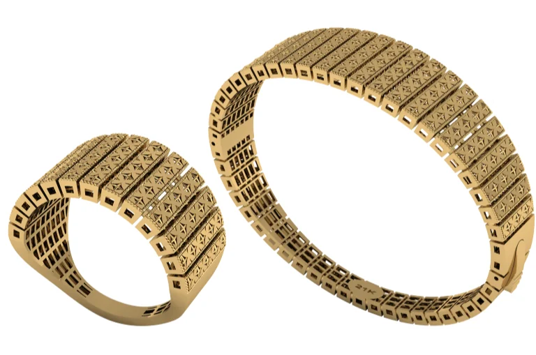 Жёсткий браслет-кафф с аккуратной шириной и ровной дугой с аккуратной окантовкой и строгими гранями без ярких вставок, где акцент строится на форме и полировке. Полировка хорошо ловит свет, поэтому акцент заметен, но не перегружен. Полировка подчёркивает золото и даёт ровные тёплые блики.