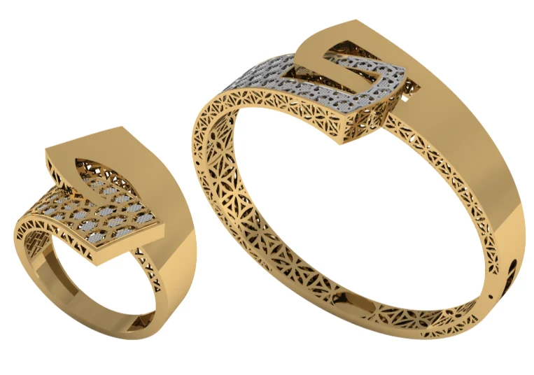 Разомкнутый обод со сбалансированным профилем и чистой геометрией с геометричным рельефом, подчёркивающим форму в лаконичном стиле, с упором на чистую геометрию. Чистый силуэт выглядит современно и легко сочетается с часами и кольцами.