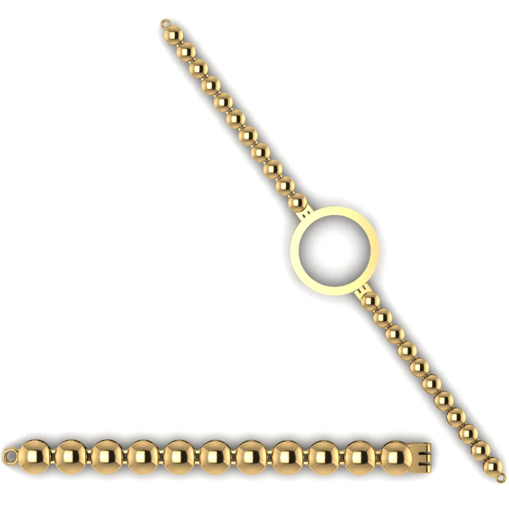 Цепочный браслет с подвижными звеньями и собранным силуэтом и сияющим акцентом из мелких камней на центральной детали. Подвижные звенья дают комфорт, а линия аккуратно смотрится в движении.