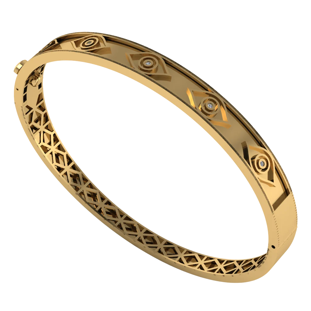 Тонкий браслет с декоративными винтовыми мотивами и аккуратными круглыми акцентами по окружности. Сдержанный ритм деталей смотрится чисто, а ажурная изнанка добавляет лёгкости.