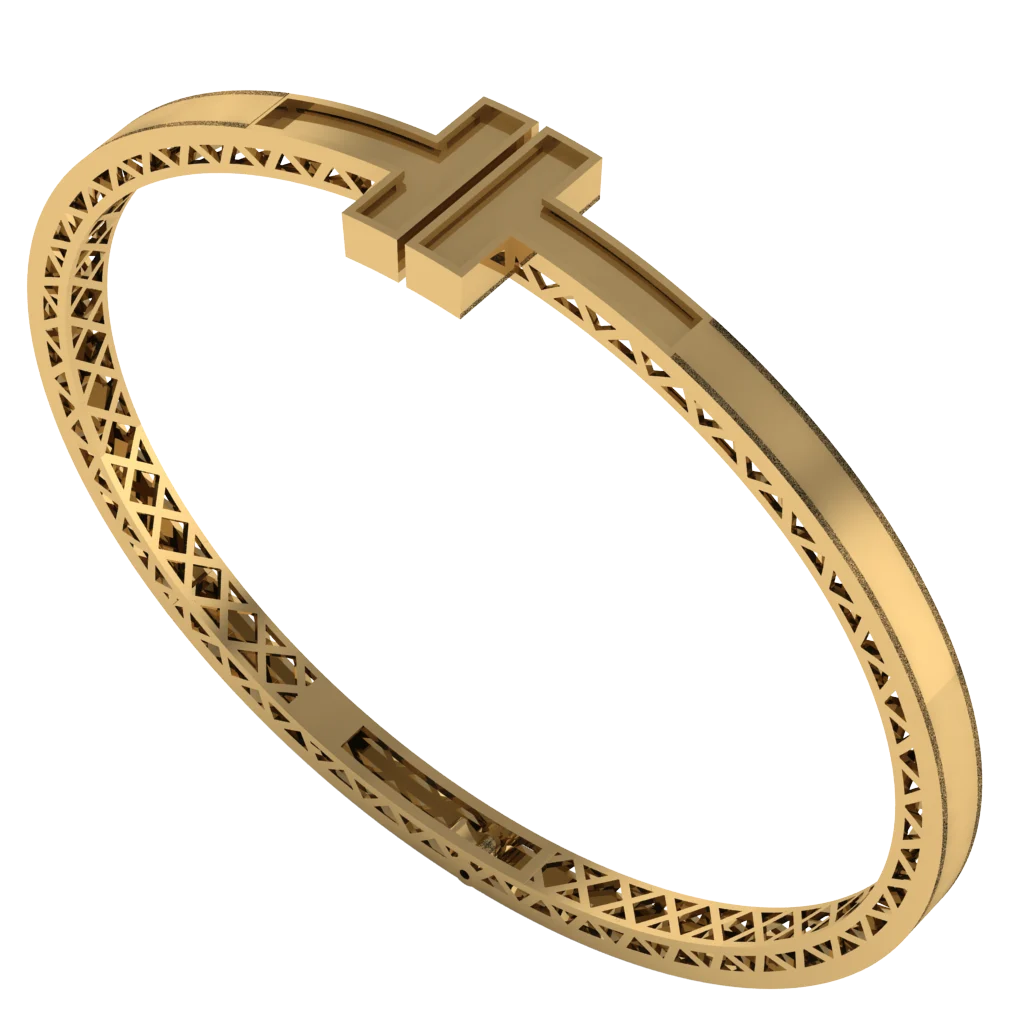 Минималистичный браслет с Н образным верхним элементом без инкрустации. Тонкая дуга и треугольный ажур внутри делают украшение лёгким, а чёткие линии хорошо сочетаются с часами.