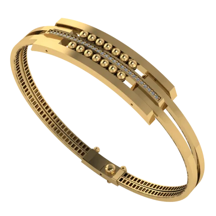 Браслет с переплетённой лентой в верхней зоне, создающей мягкий узел без камней. Плавные линии и зеркальная полировка делают дизайн нарядным, при этом силуэт остаётся лёгким и аккуратным.