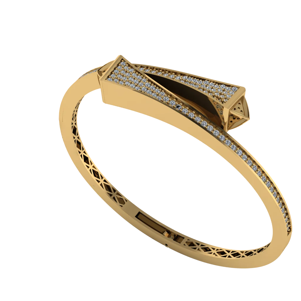 Браслет с выразительной геометрией с чёткими фасетами и собранной архитектурой формы и аккуратными вырезами, которые добавляют воздуха. Перфорированная внутренняя часть смягчает массивность и подчёркивает форму. Композиция выглядит собранно и легко вписывается в повседневный стиль.
