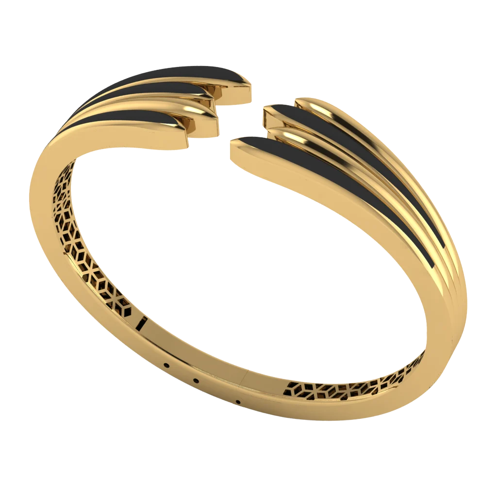Тонкий обод с плетёной фактурой и ровным силуэтом и тонкой полосой камней вдоль кромки. Лёгкая внутренняя структура поддерживает комфортную посадку и чистый силуэт. Контраст тёмной детали подчёркивает геометрию и делает акцент выразительным. Акцент смотрится аккуратно и подчёркивает современный характер дизайна.