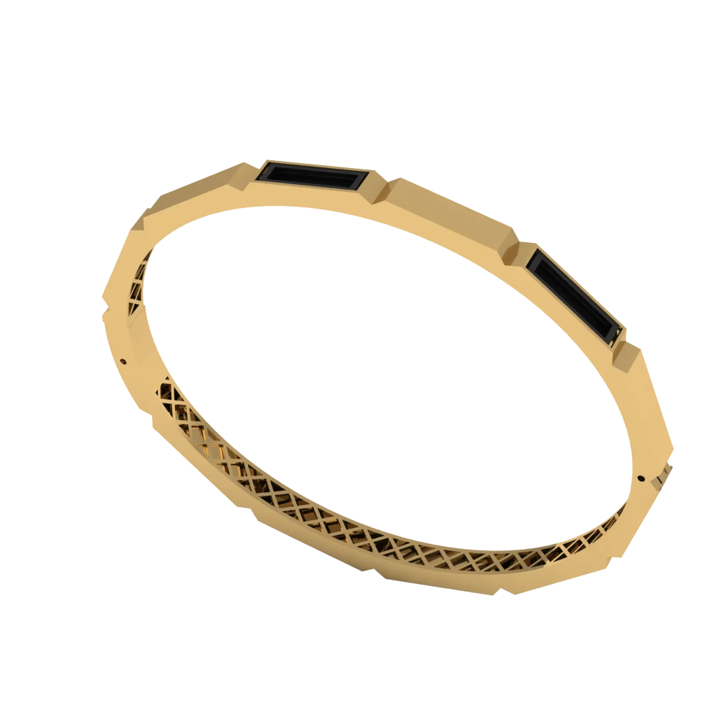 Архитектурный браслет с аккуратной зернистой окантовкой и чистыми гранями и ровной линией по кромке и чистой геометрией. Перфорированная внутренняя часть смягчает массивность и подчёркивает форму. Композиция выглядит собранно и легко вписывается в повседневный стиль.