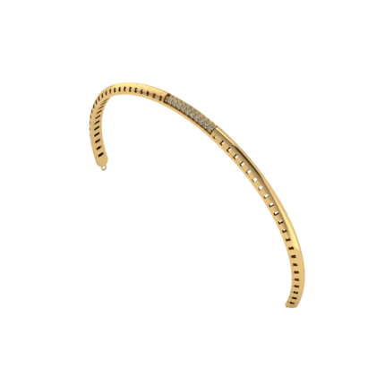 Разомкнутое полукольцо с разомкнутой формой и аккуратным изгибом и аккуратной фактурой, которая ловит свет с минималистичным характером и спокойным сиянием. Открытая форма удобно садится и смотрится современно в повседневных образах. Полировка подчёркивает золото и даёт ровные тёплые блики.