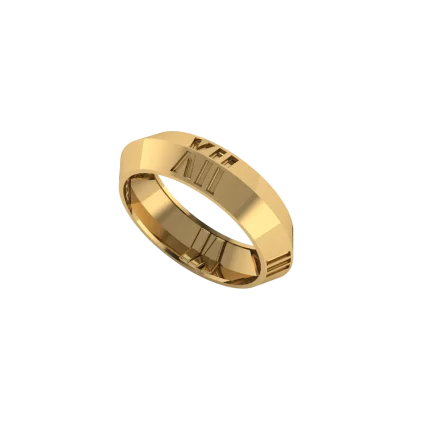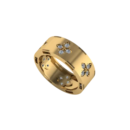 Широкий ободок с декоративным орнаментом и мелкими прорезями по верхней линии: рисунок выглядит как резная дорожка, а золото по кромкам отполировано, поэтому контур получается чётким и сияющим.
