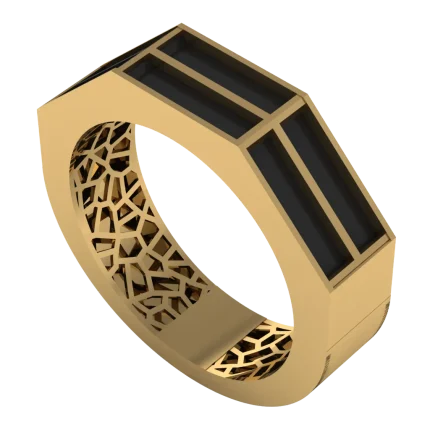 Кольцо с объемной ажурной «сеткой» и плавной волной по краю — смелый дизайн и легкость в деталях.