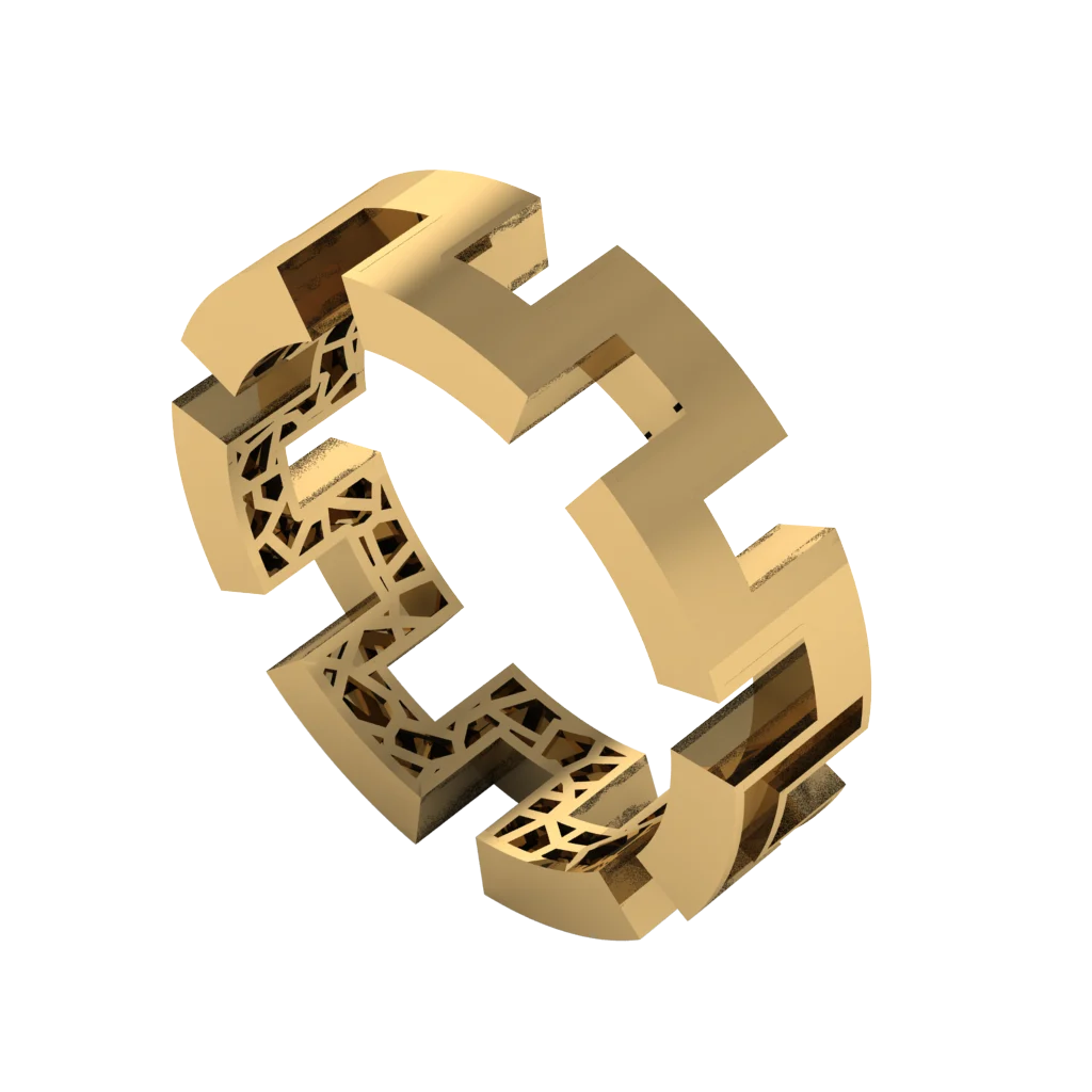 Кольцо-цепь из крупных звеньев-крестов — дерзкий акцент, стильный вариант для модных образов.