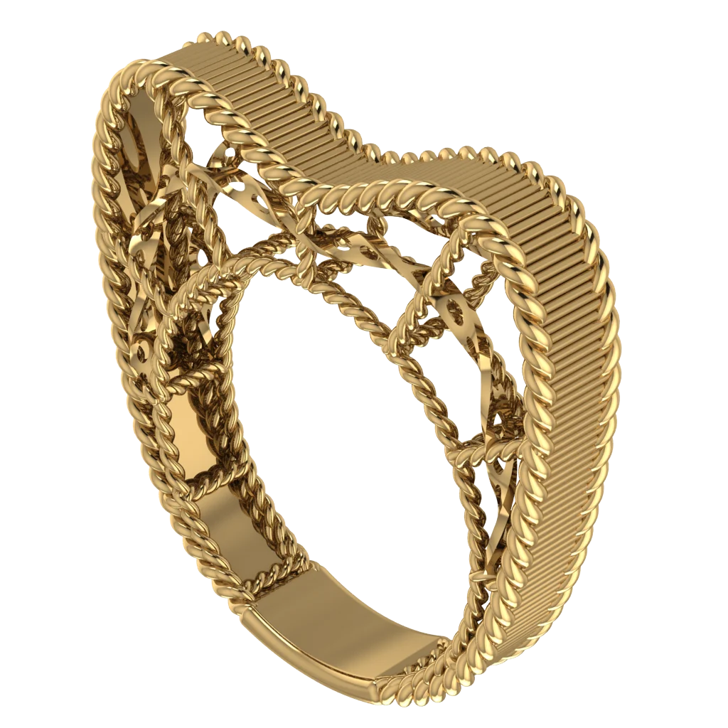 Ажурное кольцо с волной и витым краем — эффект «кружева» в металле, красиво переливается.