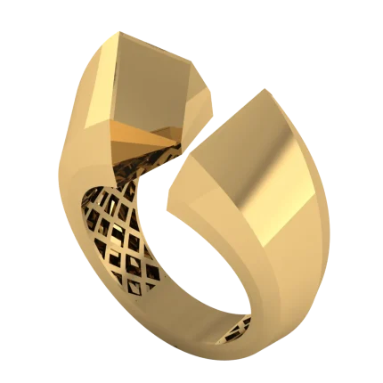 Кольцо с винтовыми элементами и одиночным камнем — минимальный блеск и стильный техно-акцент.