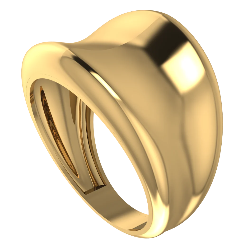 Объемное кольцо с мягкой скульптурной формой — округлые грани, зеркальный блеск и эффект «капли».