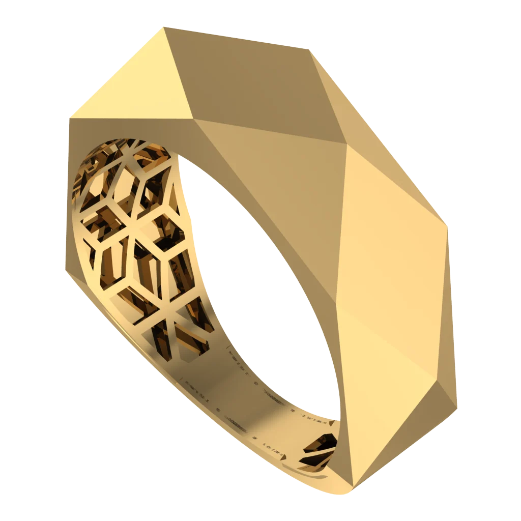 Фацетированная печатка с ломаным профилем и ажурной шинкой — смелая геометрия и динамичные грани.