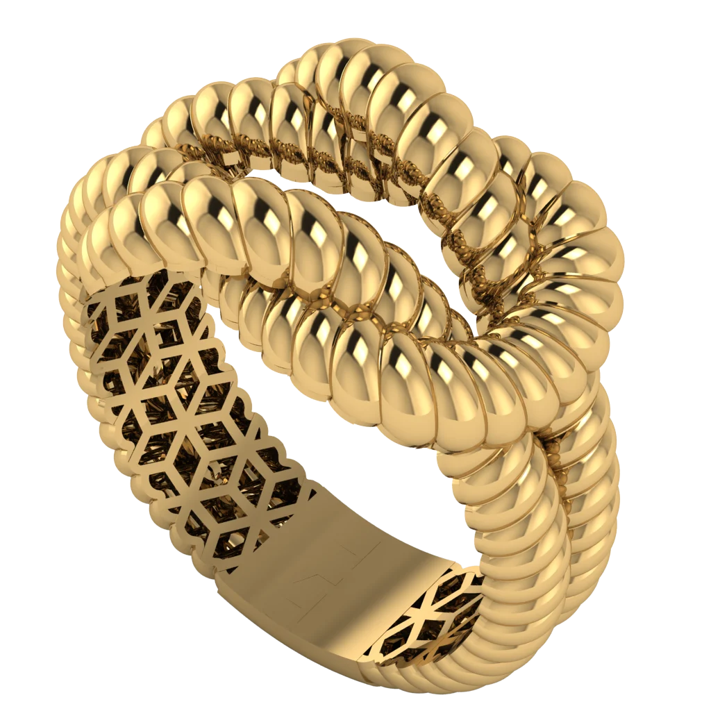 Архитектурное кольцо с черными вставками на верхних площадках — контрастный минимализм и строгие линии.