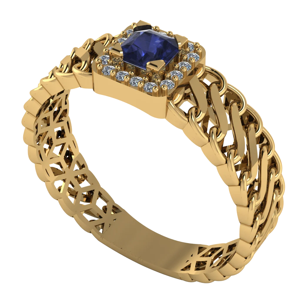 Кольцо с синим камнем и паве-ободком — четкая геометрия, блеск по контуру и выразительный акцент.