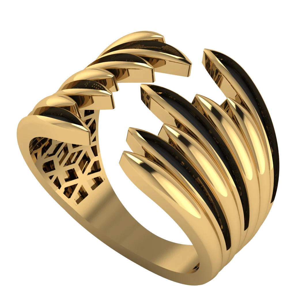 Кольцо с зубчатым рельефом, как «пила» — дерзкая геометрия и объемный силуэт.