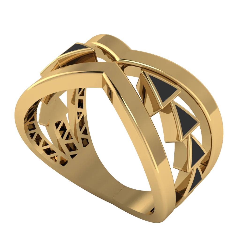 Кольцо с переплетением лент и ажурным низом — легкая архитектура и мягкие блики.