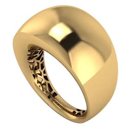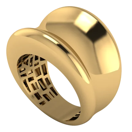 Кольцо с крупными округлыми сегментами — смелый объем и гладкие блики.