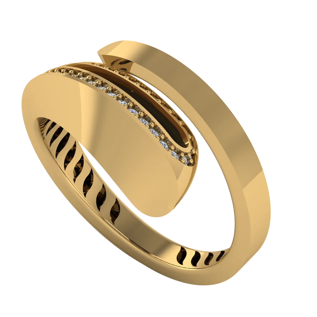 Кольцо с широкой боковой дорожкой камней — больше сияния и чистая форма.