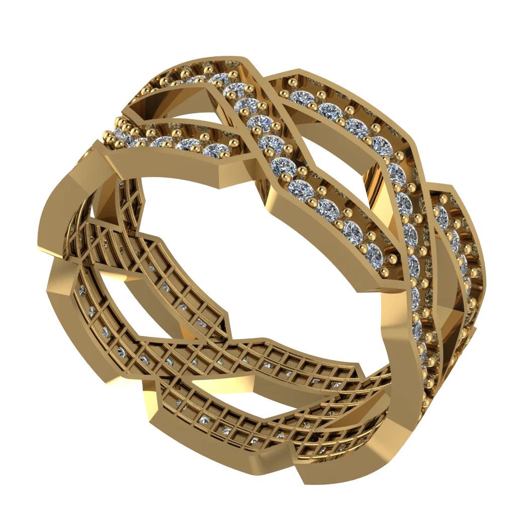 Открытое ажурное кольцо с паве по контуру — легкая решетка и сияние на ребрах.