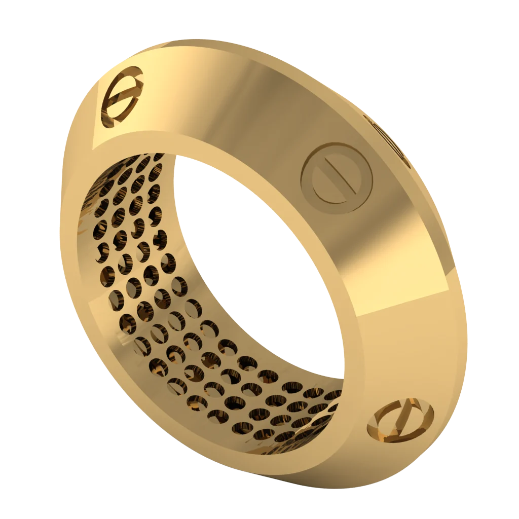Кольцо в стиле «винты и перфорация» — индустриальный дизайн и строгий характер.