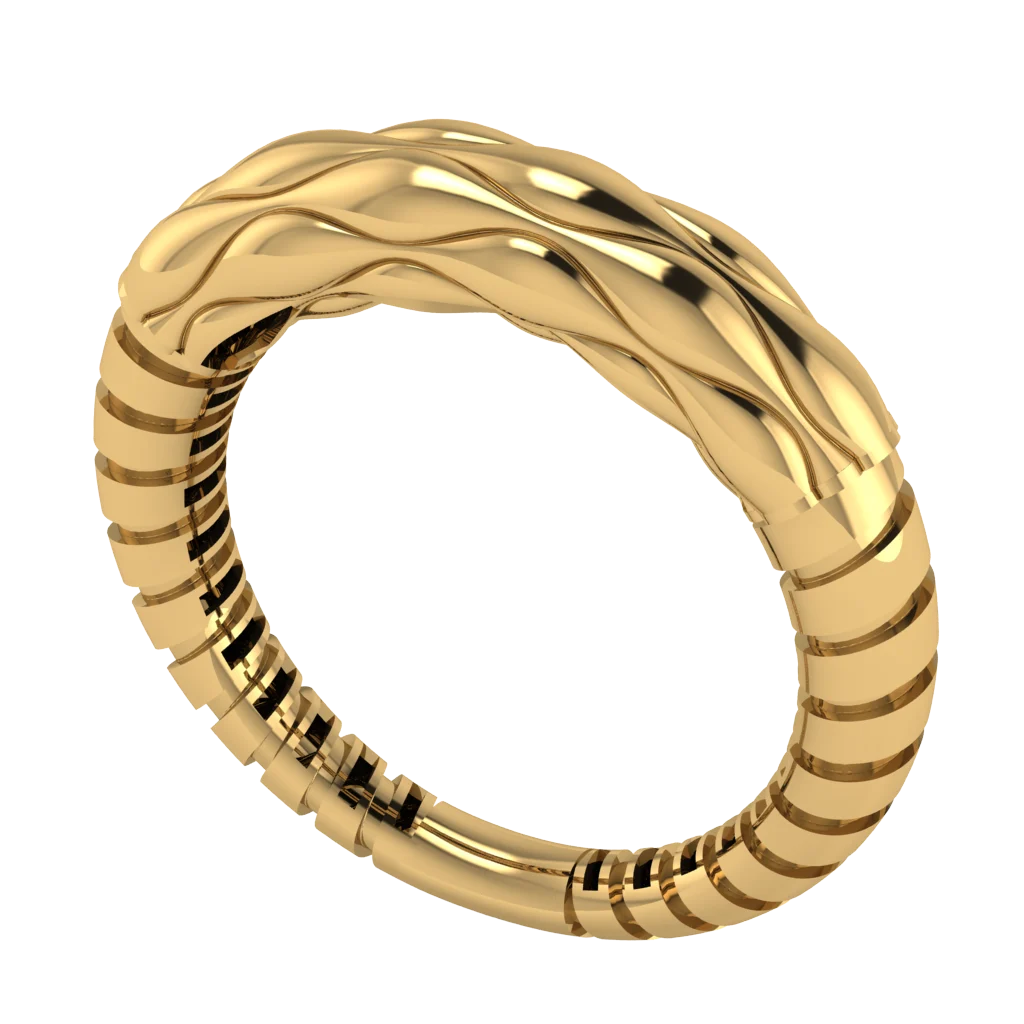 Кольцо с витым рельефом по кругу — классическая фактура «канат» и комфортная посадка.