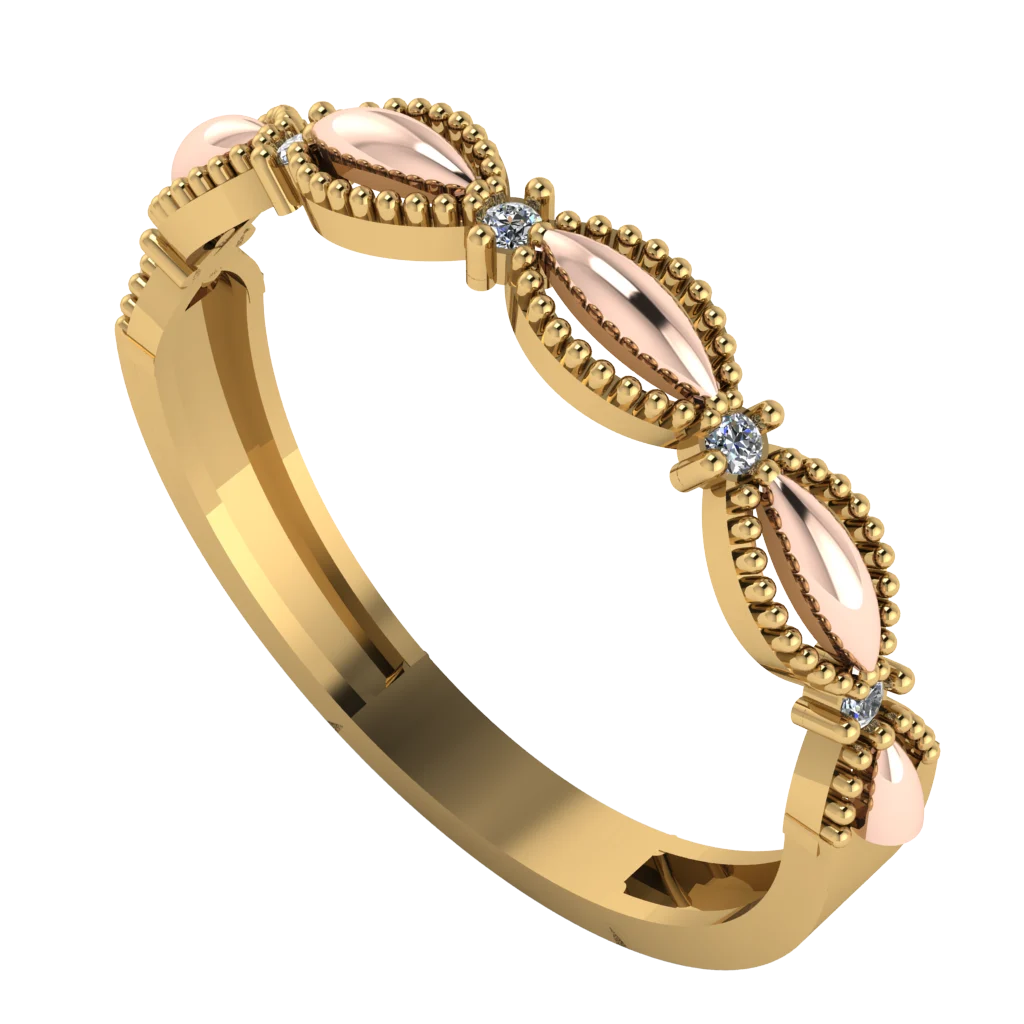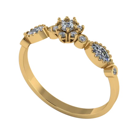 Три овальных звена с инкрустацией соединены в верхней части, создавая декоративный ритм: между ними заметны тонкие перемычки, а тёплое золото и камни дают мягкое сияние без перегруза.