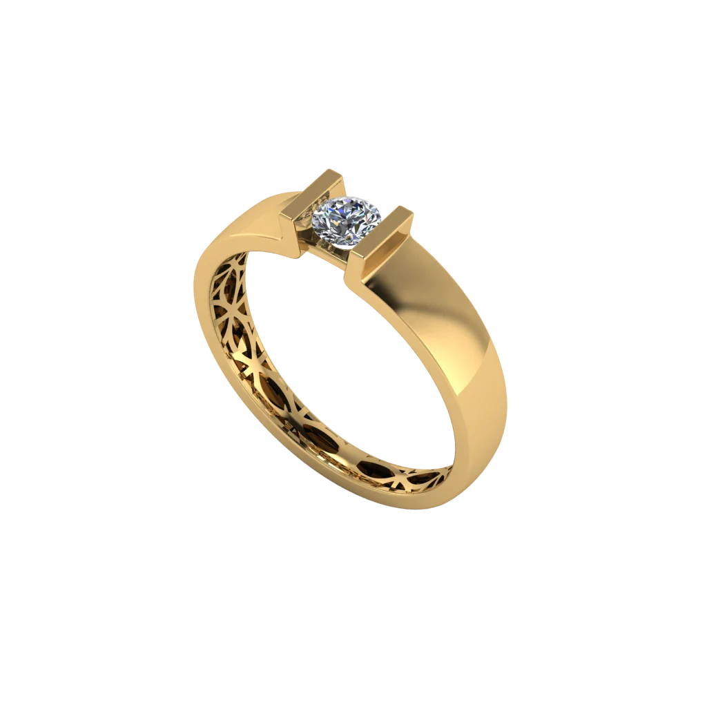 Кольцо с гладкой шинкой и ажурными прорезями, солитер на тонких лапках — лёгкая классика с характером.