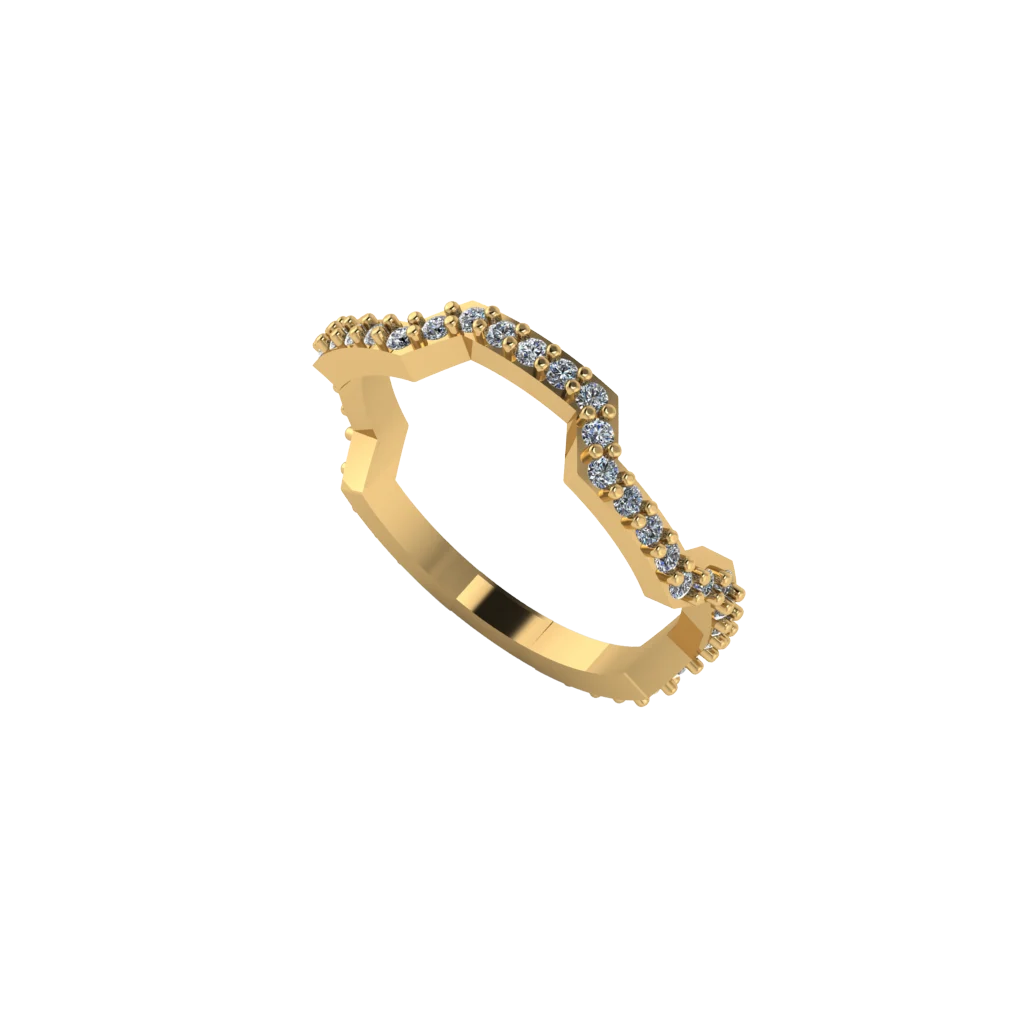Верхняя композиция собрана вокруг фигурного ажурного мотива с мягкими волнами: прорези делают силуэт легче, а тёплое золото по кромкам отполировано и подчёркивает графику узора при движении.