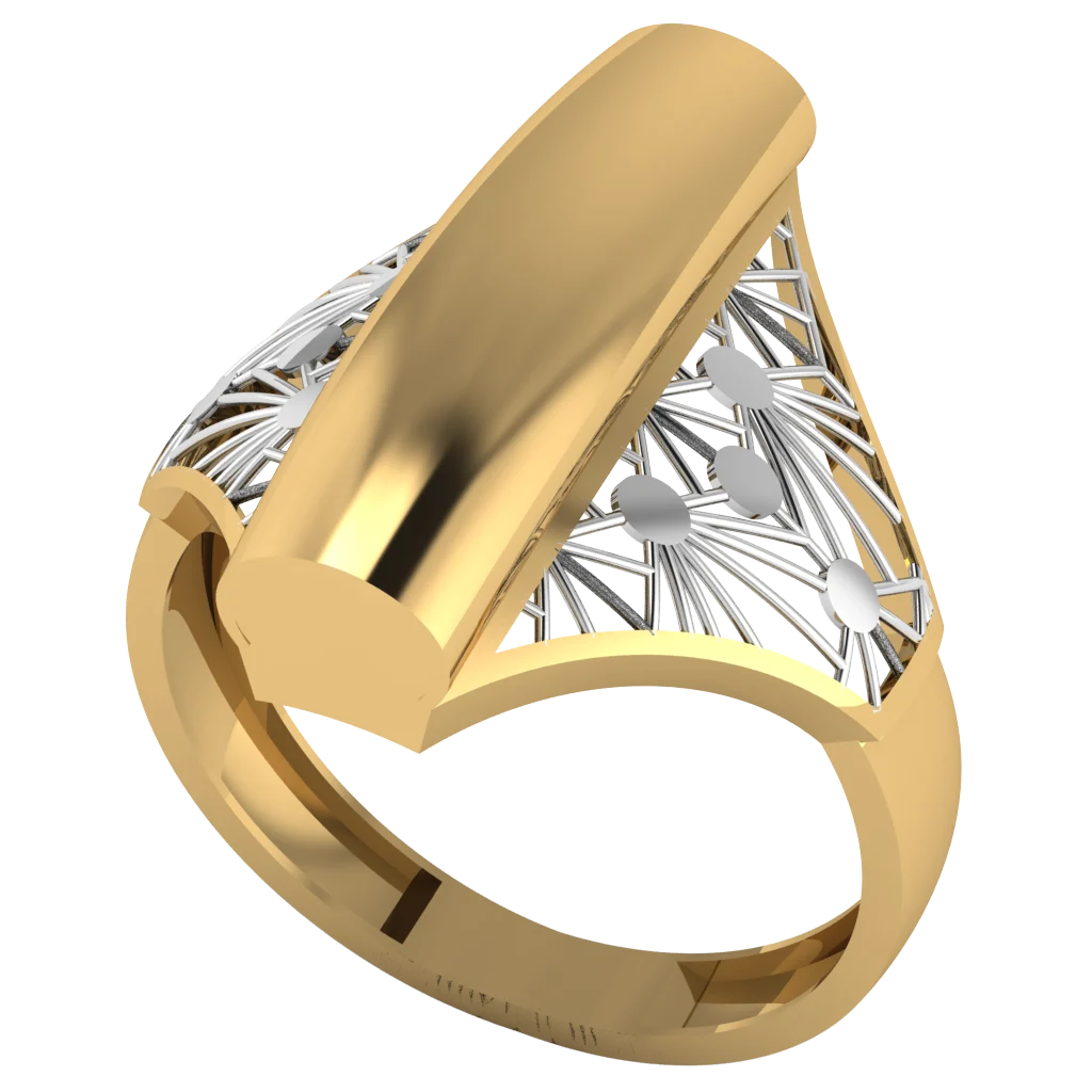 Кольцо с широкой золотой лентой и светлой ажурной основой, асимметричный разворот. Архитектура формы, воздух и стиль. Идеально для повседневных и вечерних образов.