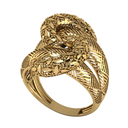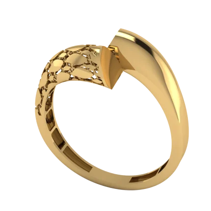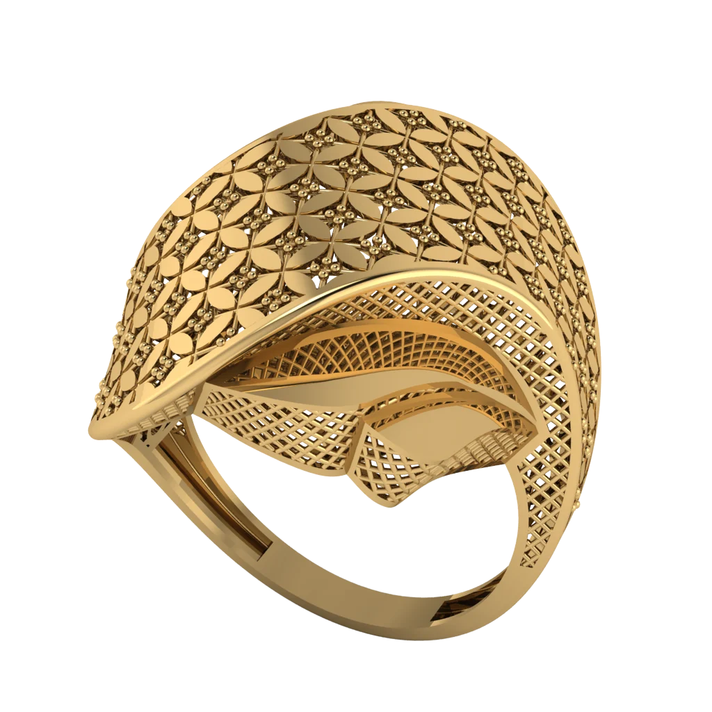 Ажурная сетка с чётким ромбовым рисунком образует широкий верх, напоминающий решётку; тёплое золото подчёркивает графику, а полировка по кромкам делает контур строгим и сияющим.