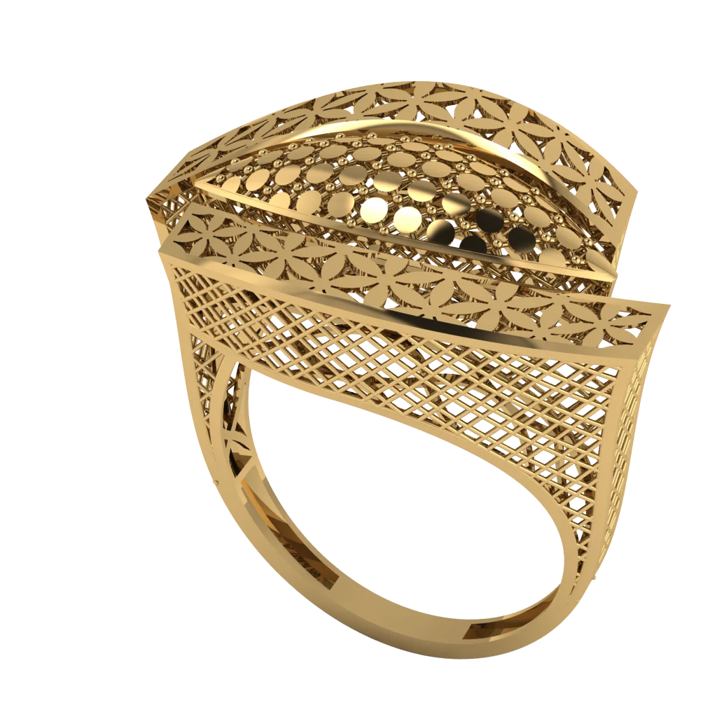 Кружевной верх с ромбовой решёткой и мягкой дугой шинки создаёт графичный силуэт; в тёплом золоте полировка по краям подчёркивает строгую геометрию и аккуратные отражения.