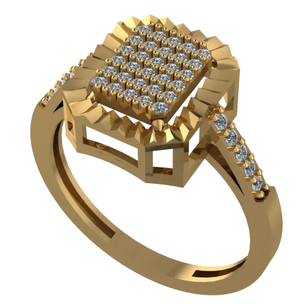 Лаконичное кольцо в золоте с акцентом на строгие грани и ажурные прорези; рифленый рельеф добавляет глубины. Красиво ловит свет и не перегружает образ. Подходит для ежедневной носки.