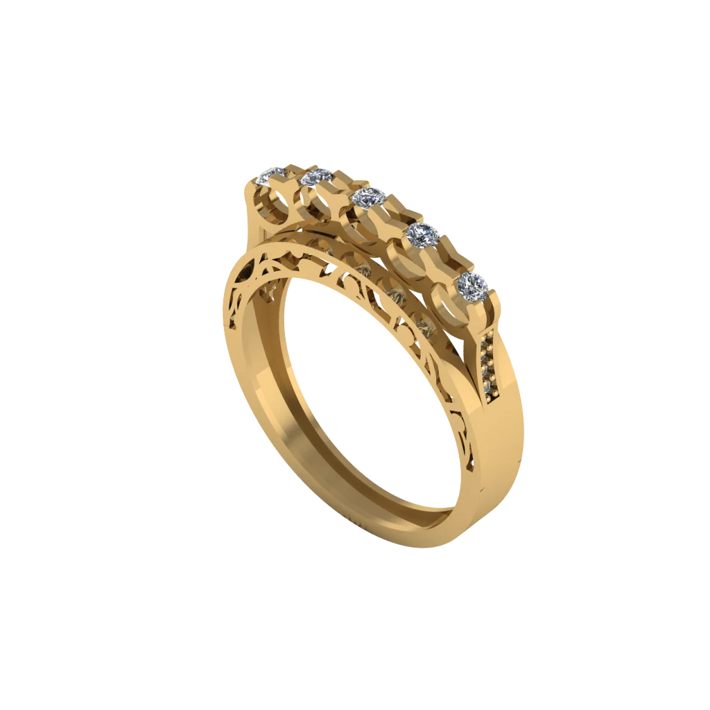 Модель‑цветок — верх собран в крупную звездообразную «розетку» из камней, которая даёт яркий фокус; золотая основа держит композицию лёгкой и праздничной одновременно.