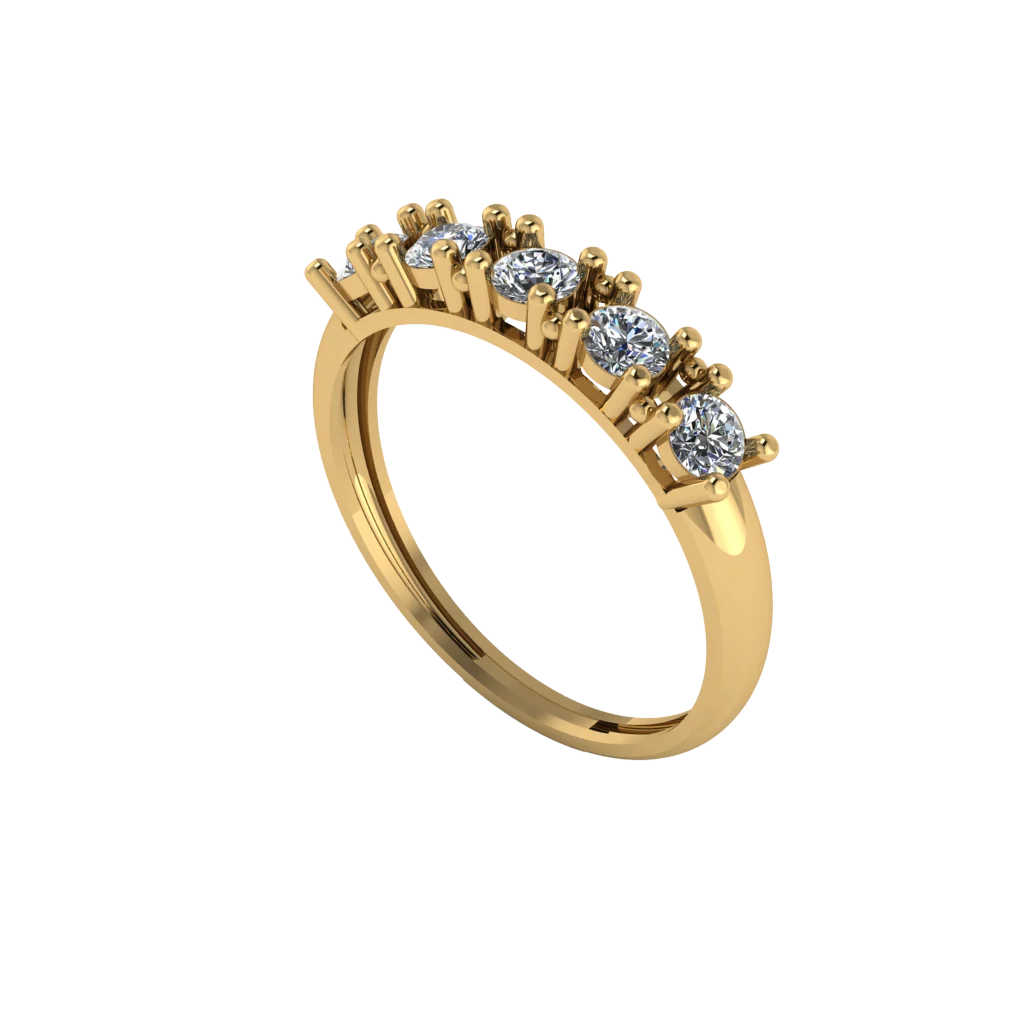 Лаконичный дизайн из желтого золота с акцентной деталью вверху и камнями в отделке, сочетание гладких плоскостей и блеска камней выглядит сбалансированно; форма удобна для носки и подходит под повседневный стиль.