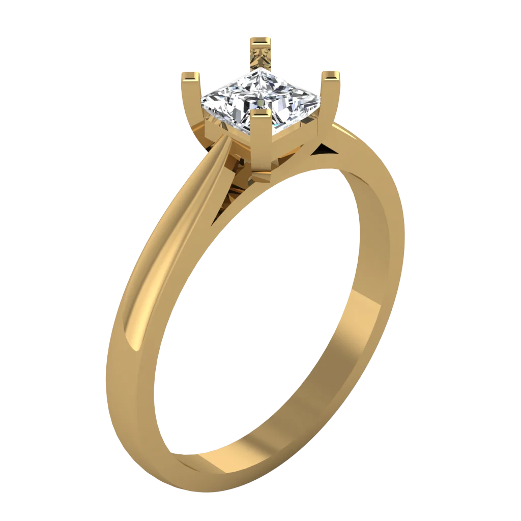 Строгое кольцо с квадратным камнем в высокой посадке: массивные лапки держат вершину над шинкой, а минималистичная гладкая поверхность подчёркивает геометрию и тёплый оттенок золота.