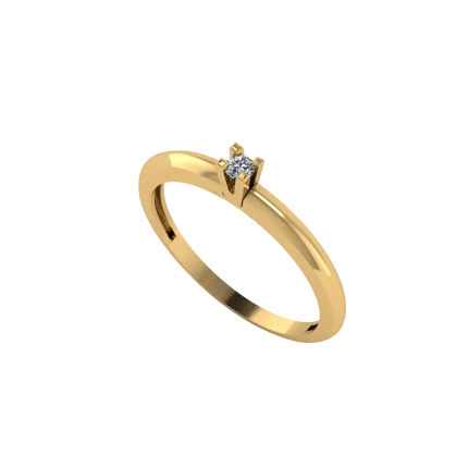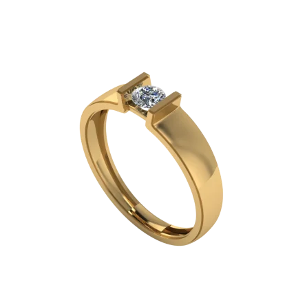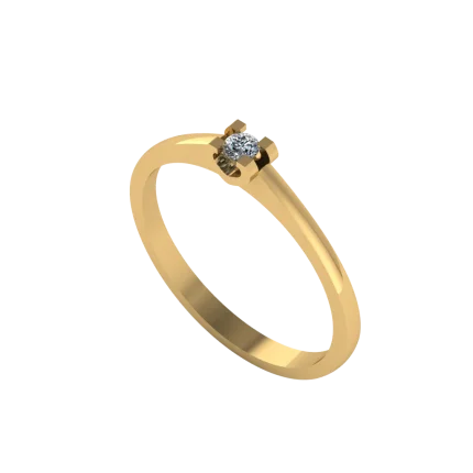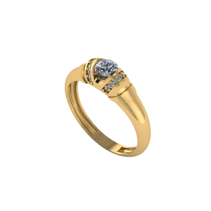 Дорожка вставок мягко обрамляет верхнюю линию и подчёркивает посадку центрального камня; плечи гладкие, а тёплое золото по кромкам отполировано, создавая строгий контур и аккуратное сияние.