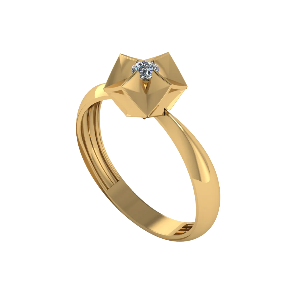 В тёплом золоте особенно заметна двойная шинка, расходящаяся к вершине и подводящая к центральной посадке; зеркальная полировка по кромкам создаёт чистый контур и подчёркивает объём.