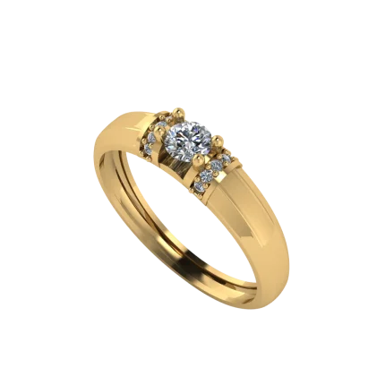 Ритм камней по дуге формирует аккуратную дорожку вставок на плече и подводит к центральной посадке; тёплое золото между камнями остаётся гладким, создавая чистый профиль и ровное мерцание.