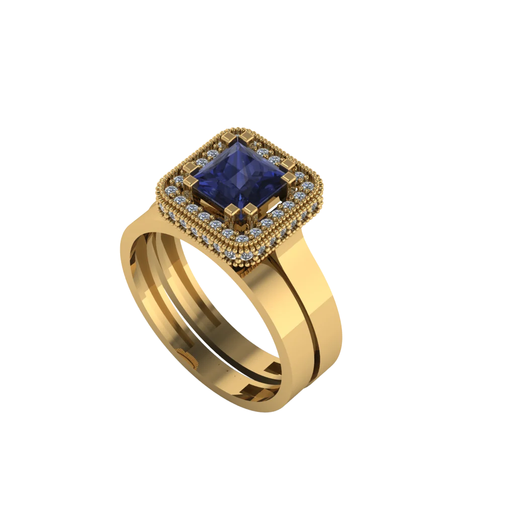 Кольцо с тёмным квадратным камнем в высокой посадке и аккуратной широкой шиной: вершина выглядит строго и собранно, а тёплое золото подчёркивает контраст глубокого цвета и зеркальной полировки.