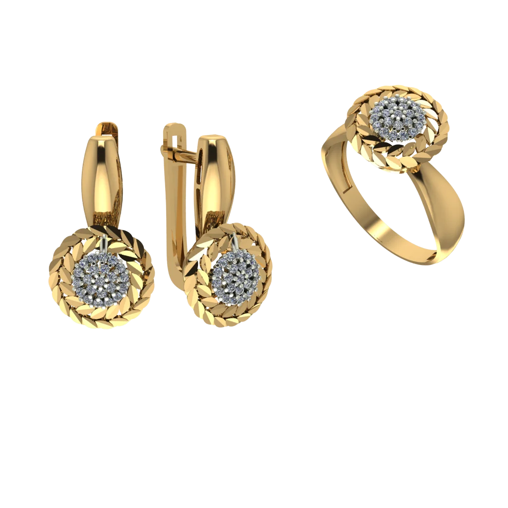Минималистичная пара: серьги и кольцо с аккуратной вставкой и чистыми линиями, камни дают мягкое сияние, дизайн подходит тем, кто любит лаконичные украшения.