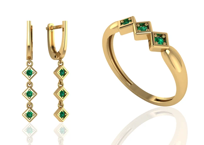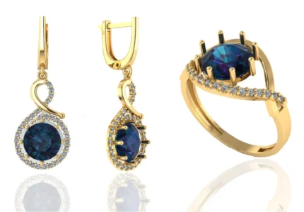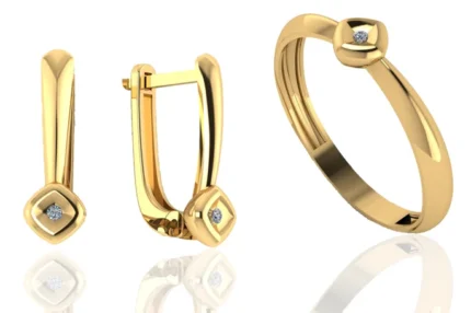 Серьги и кольцо с камнем-центром и мелкими камнями по периметру, создающими мягкий ореол. В золоте выглядит нарядно и аккуратно, без перегруженных формулировок.